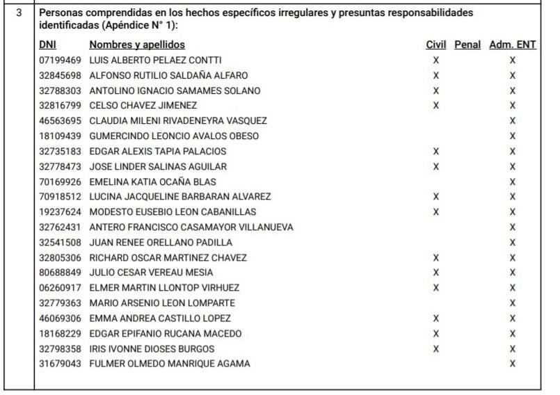 A ello, también añade dar inicio a las acciones legales civiles contra los funcionarios y servidores públicos comprendidos en los hechos con evidencias de irregularidad del presente Informe de Control Específico.