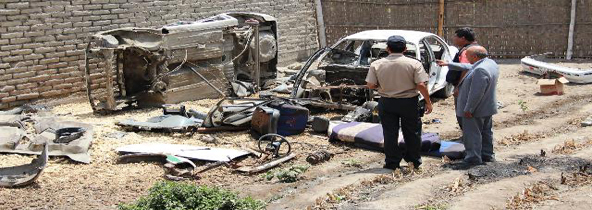 Efectivos de la Sección de Prevención de Robo de Vehículos (Seprove) allanaron esta mañana un corralón en el sector de Santa Clemencia, donde venían desmantelando dos automóviles robados y había autopartes de otras tres unidades,también robadas. (Texto y foto Lindberg Cruzado)