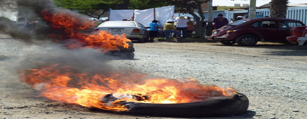 Chimbotenlinea.com (Por Cintia Cabrera).-No soportan más engaños. Los moradores del sector Florida Alta provistos de pancartas y llantas con fuego se postraron en el frontis de la Subregión El Pacífico, para reclamar a la gerente de la institución, Pamela Bermúdez, la construcción de un enrocado en la zona ya que no hay orilla y el mar ha erosionado las veredas del jirón Pasco.
