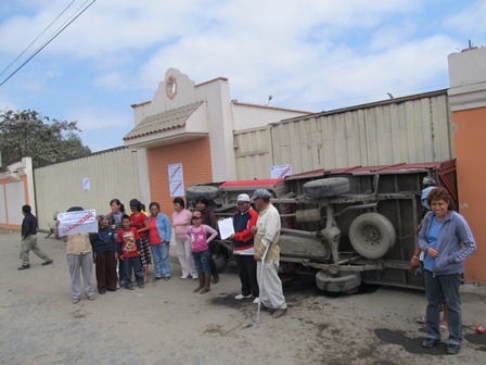 Chimbotenlinea.com (Redacción Central) VIDEO.-Un sector de la población del anexo de Tambo Real Nuevo está en desacuerdo que la empresa Seagro SAC, que se dedica al procesamiento del marigold, siga funcionando. Hoy, a las 11 de la mañana, como una medida de protesta voltearon una camioneta de esta planta y la colocaron atravesada en la puerta principal, mientras que por el portón de ingreso de los vehículos grandes colocaron el tronco de un árbol.