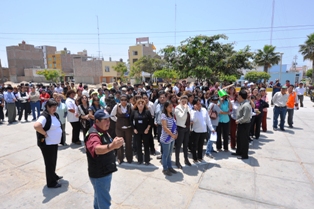 Chimbotenlinea.com (Por Cintia Cabrera).- Esta mañana en el Centro Cívico de Nuevo Chimbote, los trabajadores de la Municipalidad Distrital respondieron positivamente al simulacro de sismo y tsunami, que el área de Defensa Civil organizó como parte del plan de contingencia programado por el Comitè Provincial de Defensal Civil.