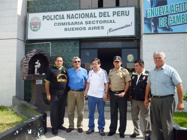 A primera hora el asesor externo en Seguridad Ciudadana, coronel PNP (r) Elidio Espinoza Quispe, realizó una Charla en materia de seguridad a policías, serenos y ronderos en el patio de la comisaría de Buenos Aires.