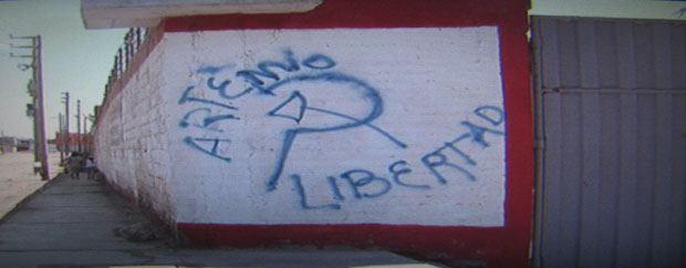 Chimbotenlinea.com (Por: Redacción Central).- Sujetos desconocidos hicieron pintas esta madrugada en las fachadas del local del Programa Nacional de Asistencia Alimentaria (Pronaa) y de la empresa AGA, pidiendo la libertad del cabecilla de Sendero Luminoso José Eleuterio Flores Hala, alias Camarada Artemio.