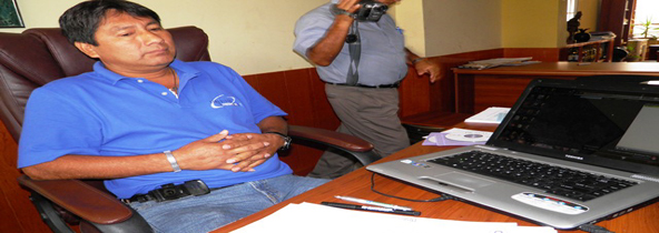 El excomando Juan Calderón Altamirano entregó audios a la prensa en los que se probaría la responsabilidad del presidente regional César Álvarez Aguilar en la muerte de una mujer de 60 años, durante en la entrega de panetones que realizó el movimiento Cuenta Conmigo el 22 de diciembre del 2009.(Texto y foto Lindberg Cruzado)