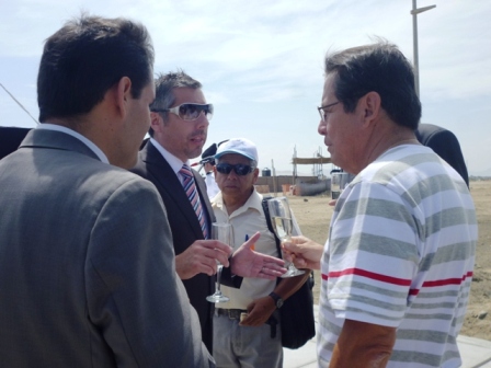 El alcalde distrital aprovechó la ceremonia de colocación de la primera piedra en la denominada "Villa Naval", donde se construirán 100 casas para la urbanización de los miembros de la Marina de Guerra del Perú, ubicada en terrenos de Urbi Propiedades.
