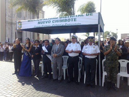En el acto cívico desarrollado hoy participaron el alcalde Juan Francisco Gasco Barreto, regidores, el gobernador distrital Godofredo Castillo, representantes de la UGEL Santa, de la Marina de Guerra; del Ejército Peruano y la Policía Nacional; el rector de la Catedral Nuestra Señora del Carmen, padre Juan Roger, entre otros.