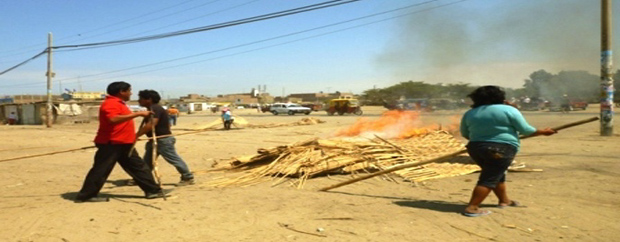 Chimbotenlinea.com (Por: Cintia Cabrera).- Una batalla campal ocurrió en la ampliación del mercado Los Olivos ubicado en el asentamiento humano Las Ponceanas, en Nuevo Chimbote, cuando los serenos de la Municipalidad Provincial del Santa (MPS) intentaron desalojar a un grupo de invasores de estos terrenos la madrugada de hoy.