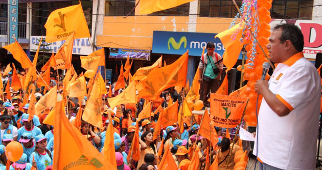 La principal avenida Mariscal Luzuriaga fue escenario de un mitin lleno de banderas naranja donde Arturo Torres Calderón se comprometió a hacer realidad su proyecto “Un Poncho Verde”, que consistiría en la reforestación de la Cordillera Negra.