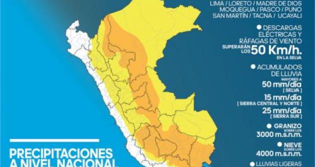 La institución indicó que en la estación de verano, que empezó oficialmente ayer a las 17:22 horas, para la zona andina se esperan condiciones de lluvia deficitarias, a excepción de la sierra sur oriental, que comprende las zonas de Puno y Cusco, donde las lluvias se estiman sobre los valores normales. En tanto, en la selva norte, se prevé lluvias de inferiores a normales.