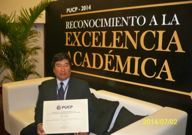 La placa de reconocimiento a la excelencia académica otorgado por la PUCP fue entregado, el pasado 2 de julio, por el vicerrector académico Efraín Gonzales de Olarte al director del colegio Mundo Mejor, Fernando Chu Phum; en un acto especial realizado en el auditorio de la Facultad de Derecho en el campus universitario de la PUCP en Lima.