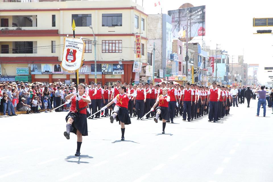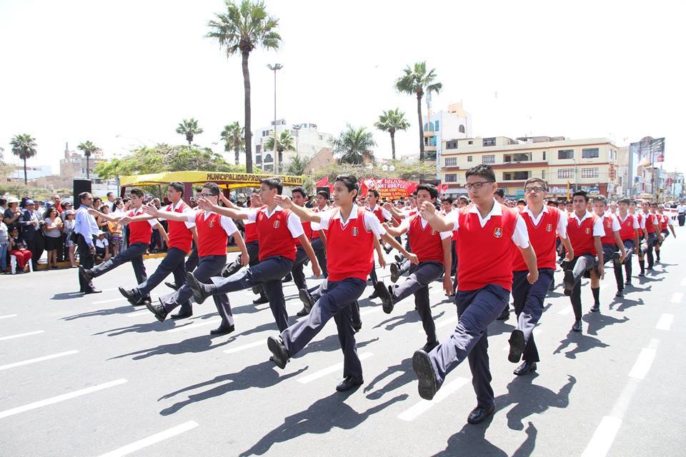 Momentos antes, la Congregación de Hermanos Cristianos, entidad promotora del mencionado colegio, tuvo la designación de izar el Pabellón Nacional, en la personal del hermano Kevin Bernard. Luego la banda de ex alumnos acompañó el desfile escolar en el que participaron las delegaciones de profesores, personal administrativo y de servicio, escoltas de alumnos y grupos de ex alumnos.