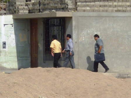 Chimbotenlinea.com (Por Cintia Cabrera).- ¿Una reunión de amigos? Uno de los detractores de la gestión del alcalde de Nuevo Chimbote, Alex Quiñones, fue sorprendido cuando salía del domicilio de “su amigo” Modesto Mondragón, éste último dirigente opositor a la comuna sureña. Al parecer, ambos personajes habrían sostenido una reunión de coordinación, pero al ser abordados por Chimbotenlinea.com no supieron responder de qué (¿?). Fotos Cintia Cabrera
