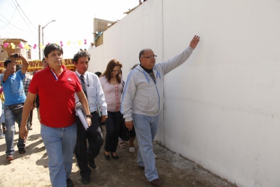Arroyo Rojas anunció la ejecución de la obra de pistas y veredas para la población del pasaje El Progreso, además indicó que la pared que divide dicha zona será derrumbada para tener mayor accesibilidad a todo el pueblo. (Por: Redacción Central)