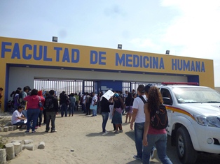 Mientras que en horas de la mañana los alumnos participaron de un plantón en el frontis de la facultad, en Nuevo Chimbote, mostrando pancartas alusivas a la salida del rector.