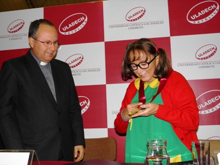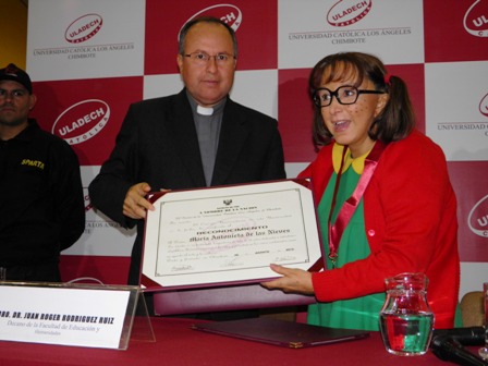 Primero fue la Universidad Católica Los Ángeles de Chimbote y luego la Municipalidad Provincial del Santa que la declaró Huésped Ilustre. El alcalde Luis Arroyo Rojas le entregó las Llaves de la Ciudad y le puso la Medalla de Chimbote, en medio del aplauso del público.