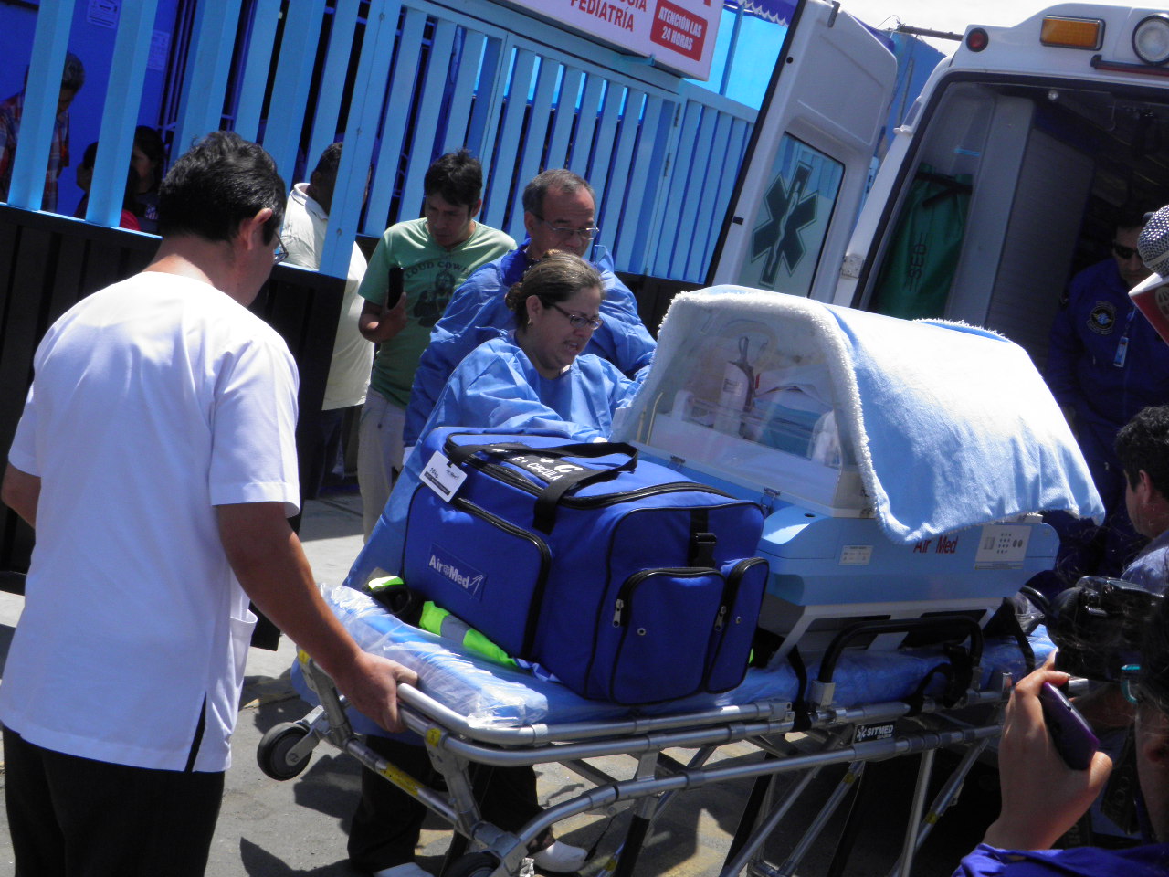 Fue un especialista de Neonatología, una enfermera y un personal de apoyo del Minsa quienes prepararon al bebe para ser llevado hacia el Hospital del Niño (Lima) donde se evaluará su estado de salud y dará su tratamiento.