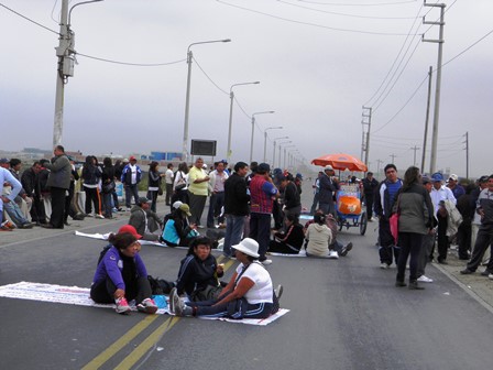 Mientras un grupo de manifestantes se apostó en el puente Lacramarca que une Chimbote y Nuevo Chimbote por la Panamericana