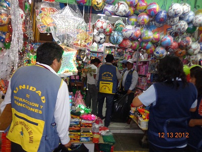 Los operativos empezaron la tarde de ayer en tres tiendas ubicadas en los jirones Leoncio Prado y Elías Aguirre y esta mañana las autoridades continuaron en el Centro Comercial Los Ferroles.