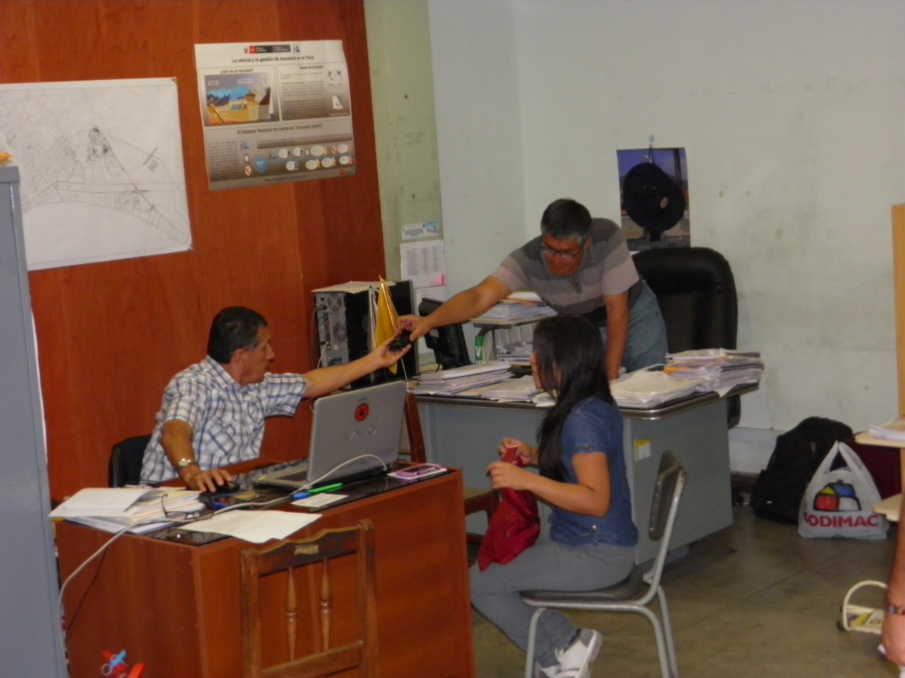 Chimbote en Línea.- Tras varios días de haber mantenido su distancia, el exjefe de Defensa Civil, Juan Cam Bernuy involucrado en el presunto cobro de una coima al propietario de una discoteca céntrica, se apersonó hasta la Municipalidad Provincial del Santa para hacer la entrega formal del cargo.