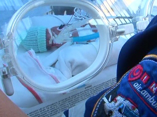 En una incubadora especial, con un sistema sofisticado, y con un ventilador portátil, la cincomesina fue sacada del hospital La Caleta para ser llevada en una ambulancia del EsSalud hasta el aeropuerto de Chimbote de donde salió rumbo a la capital de la República.