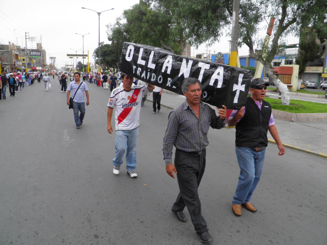 Chimbote en Línea.- Al cumplir 14 días de su huelga nacional indefinida, los trabajadores administrativos de varias instituciones educativas de la provincia del Santa se movilizaron por las principales calles de Chimbote y como acto simbólico quemaron un ataúd en rechazó a la gestión del presidente de la República, Ollanta Humala Tasso.