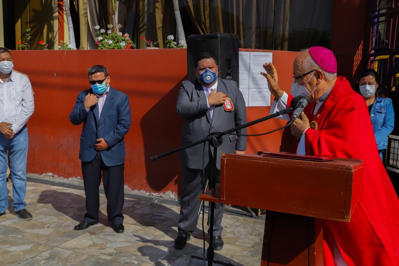 La visita institucional de la sagrada imagen fue liderada por el obispo de Chimbote, monseñor Ángel Francisco Simón Piorno, que llegó junto a los miembros de la hermandad San Pedro. Acompañó el regidor Carlos Guzmán Gaona y funcionarios de la MPS. (Redacción Central)