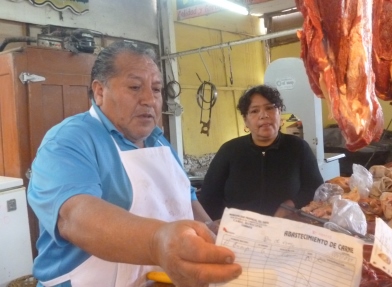 “Han cometido un abuso decomisando mi carne. Tengo el recibo de compra del carnero, pero me lo han quitado. El municipio ha puesto en ese camal gente incompetente y eso nos afecta. Me dicen que me van a devolver, pero que debo hacer un trámite, me hacen perder el tiempo y eso no me parece justo”, exhortó mostrando su recibo de compra. (Texto y fotos Milton Palpa)