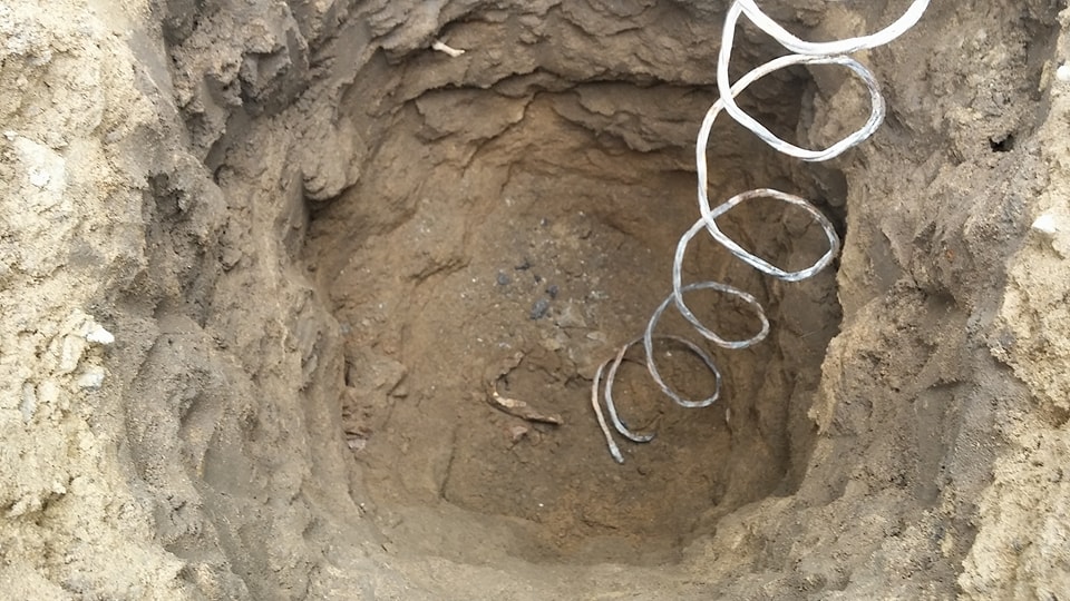 Los obreros del consorcio Electronor realizaban su labor y grande fue la sorpresa al encontrar partes de un cráneo, costillas, fémur y otras vertebras de un ser humano que permanecía enterrado en un pozo tierra en lam vía pública.