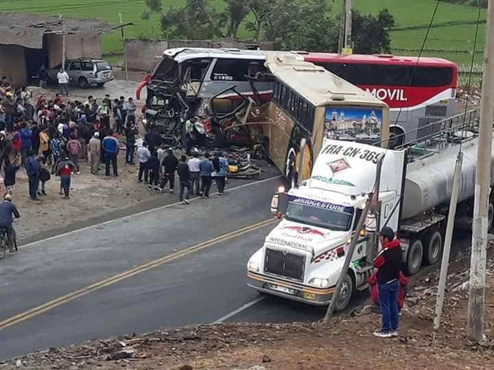 Chimbote en Línea.- Tres personas fallecidas y al menos 20 heridos es el trágico saldo de un accidente de tránsito, ocurrido esta madrugada cerca al distrito de Guadalupito,  luego del choque frontal de dos buses interprovinciales en la Carretera Panamericana Norte, cerca a la zona conocida como la Curva del Diablo en el límite de las regiones La Libertad y Áncash.