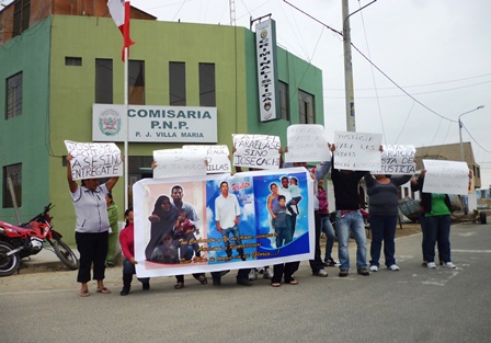 Desde muy temprano familiares, amigos y vecinos de la víctima llegaron con pancartas y una gigantografía hasta el frontis de la comisaría Villa María para exigir justicia a las autoridades. Ellos alertaban sobre la presentación de dos testigos falsos por parte del acusado.