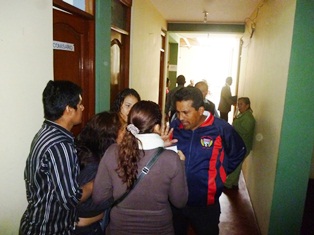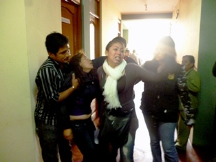 Al ingresar tanto la viuda como su hermana se abalanzaron sobre los testigos que presentó José Cachi y llegaron hasta los pasillos en donde les reclamó que declararan la verdad, mientras la multitud que respaldaba a la familia agraviada ingresó a la fuerza para