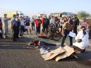 Chimbotenlinea.com (Por Cintia Cabrera).-Una anciana que se dedicaba a reciclar plásticos durante la madrugada murió tras ser embestida por un vehículo en la avenida La Marina, en Nuevo Chimbote, cerca al “Hostal Dos Delfines”. Este hecho trágico ocurrió a las 5 de la mañana. El conductor infractor se dio a la fuga dejando el cuerpo abandonado.