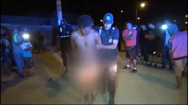 Nervin Villanueva fue azotado por la población, para su buena suerte llegaron los agentes de Seguridad Ciudadana de Nuevo Chimbote y lo rescataron. Completamente golpeado y desnudo fue llevado a la Comisaría Buenos Aires.