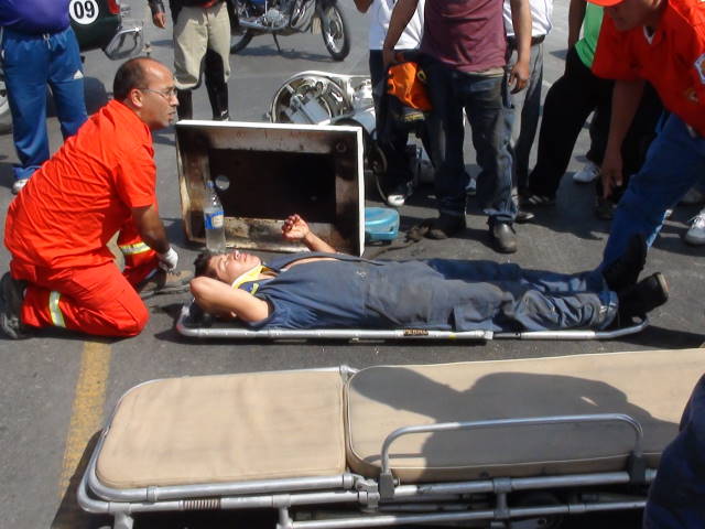 Chimbotenlinea.com (Por Cintia Cabrera).-Un joven de 25 años resultó herido tras caer sobre el pavimento de manera violenta cuando viajaba en la parte superior trasera de una camioneta, donde se trasladaba cuidando maquinaria pesada. El accidente se produjo aparentemente debido a la irresponsabilidad del chofer que no disminuyó la velocidad cuando iba a cruzar un rompemuelle ocasionando la salida del pesado material que arrastró a su victima.