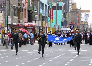 En el desfile por el aniversario de la policía participaron algunos colegios, juntas vecinales y el personal de las unidades especializadas de esta institución tutelar del Estado.(Por: Lindberg Cruzado)