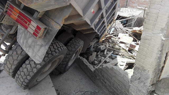 Chimbote en Línea. – Don Santos Hipólito Huayán Vargas de 60 años salvó de milagro, pues estuvo a punto de morir aplastado por un volquete que derrumbó la pared de la parte posterior de su vivienda, ubicada en el jirón Nilo manzana 61 lote 8 del pueblo joven San Pedro en Chimbote.