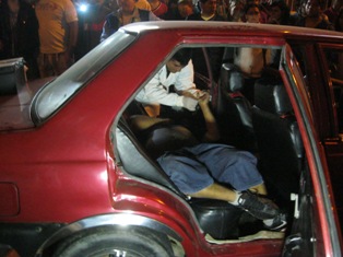 Piundo Acuña falleció al interior del vehículo de placa JO 6863. Cerca de la 1 de la mañana llegó el fiscal de turno Héctor Escobar Mendoza y el médico legista Rubén Arroyo Urresti para ordenar el levantamiento del cadáver a la morgue central para la necropsia de ley.