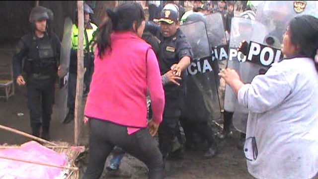 Mujeres y niños se pusieron como escudos para evitar que medio centenar de policías y agentes de Seguridad Ciudadana los saquen de sus ranchos, pero a través de actos de violencia fueron desalojados.