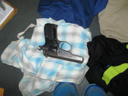 la pistola automática calibre 9 milímetros utilizada por los sicarios.