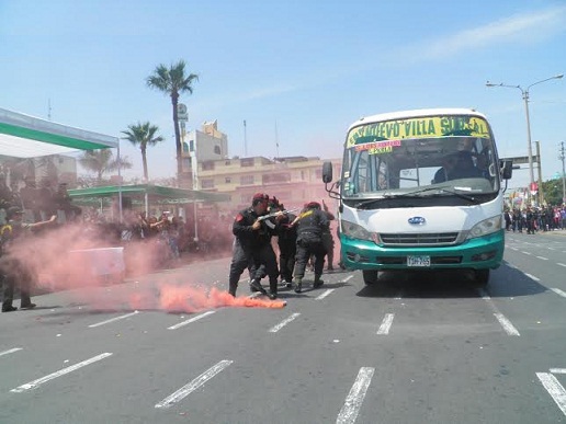 El momento creativo y pintoresco lo realizó el Escuadrón de Emergencia de la Policía Nacional, quienes demostraron como se realiza una intervención policial en un bus que se encuentra secuestrado con pasajeros.
