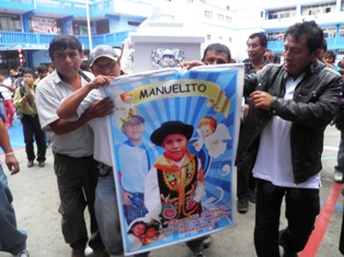 El féretro del pequeño Manuelito fue trasladado desde su vivienda hasta la institución educativa donde cursaba el 3º grado de educación primaria. A las 10 a.m. se realizó esta sentida ceremonia, donde sus amigos,