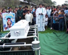 A las 11.30 a.m., después del homenaje en el centro educativo, el cortejo fúnebre partió al Cementerio Lomas de la Paz en Nuevo Chimbote, donde se le dio el último adiós al pequeño Manuelito. Durante esta ceremonia la madre del menor, Sara Ancajima Castillo, sufrió varios desmayos y no pudo evitar protagonizar desgarradoras