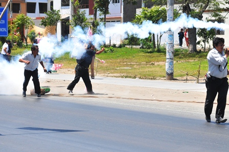 El secretario general del SUTE Santa, Cornelio Varillas Gonzales, denunció que la policía empezó a atacarles, que marchaban pacíficamente y que no había intención en ellos de generar disturbios.