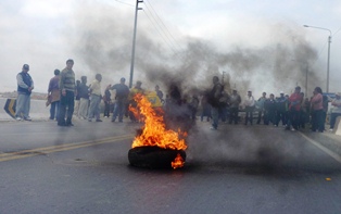 Chimbotenlinea.com (Por: Cintia Cabrera).- Cerca de 500 maestros afiliados al Sindicato Único de Trabajadores en Educación del Perú (Sutep) bloquearon la Carretera Panamericana Norte (CPN) a la altura del puente Lacramarca donde paralizaron el tráfico en horas de la mañana, quemando llantas y colocando piedras para evitar el paso de las unidades vehiculares.