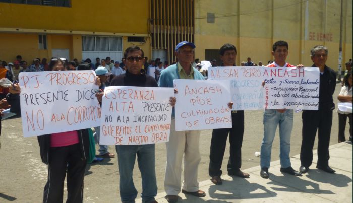 Los quejosos se concentraron desde las 10 de la mañana con el periodista y promotor de esta iniciativa, Santos Paredes, quien demandó la intervención e investigación de los recursos que vienen siendo administrados por el gobierno regional de Áncash.