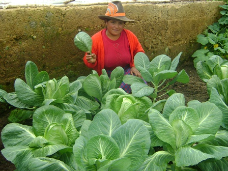 En los biohuertos familiares estas mujeres siembran repollos, zanahorias, betarragas, apios, cebollas y lechugas que cultivan con sistemas de riego por aspersión que instalaron con ayuda de organismos no gubernamentales que promueven el desarrollo socio económico de las poblaciones.
